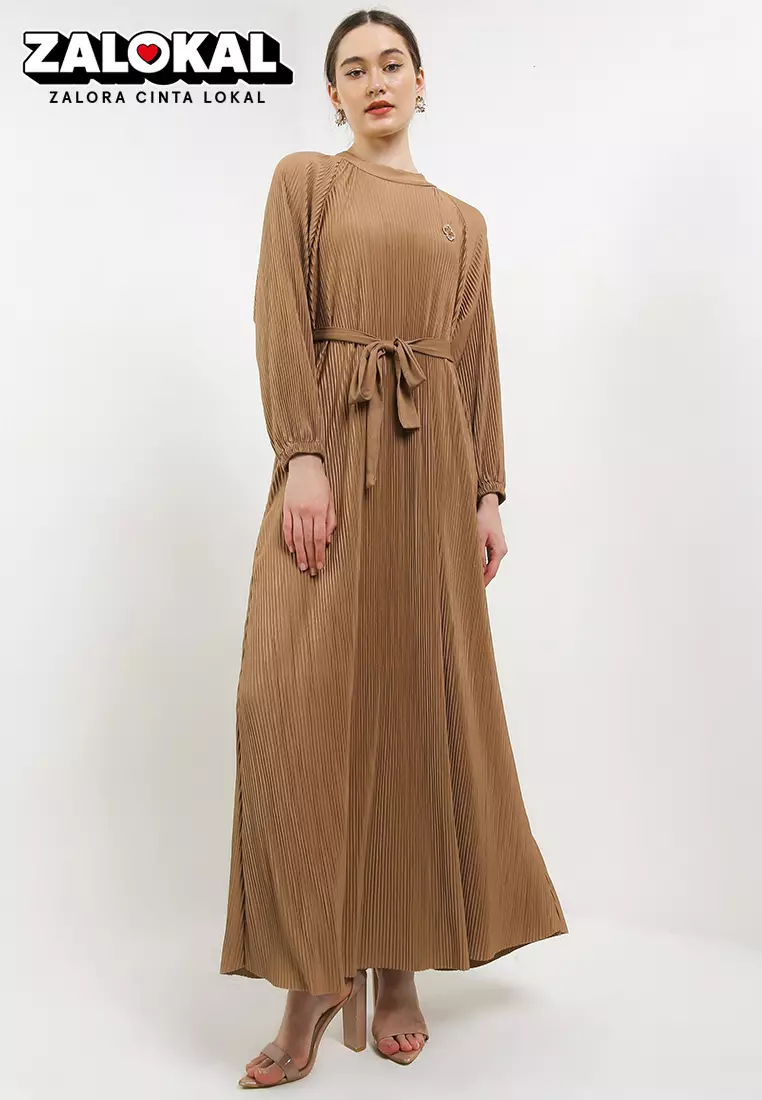 FAVSelf Tie Clover Pin Detail Pleated Long Dress998000.00