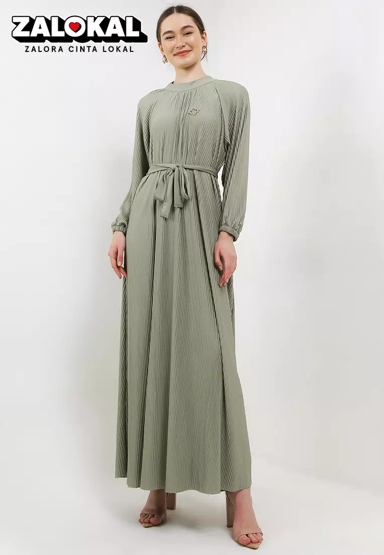FAVSelf Tie Clover Pin Detail Pleated Long Dress998000.00
