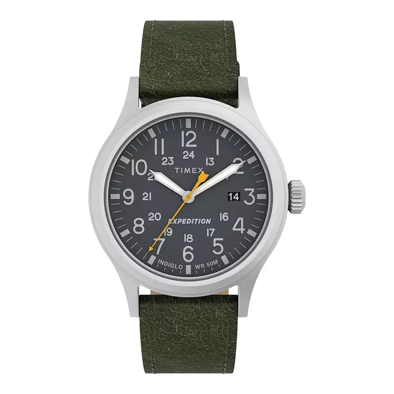 Jam Tangan Pria Timex Expedition Scout TW4B22900 Indiglo Grey Dial Green Olive Leather Strap