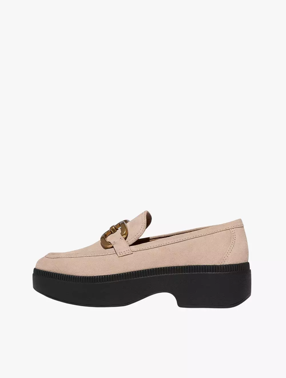 Fitflop F-Luma Square-Chain Suede Demi-Wedge Loafers - Classic Beige