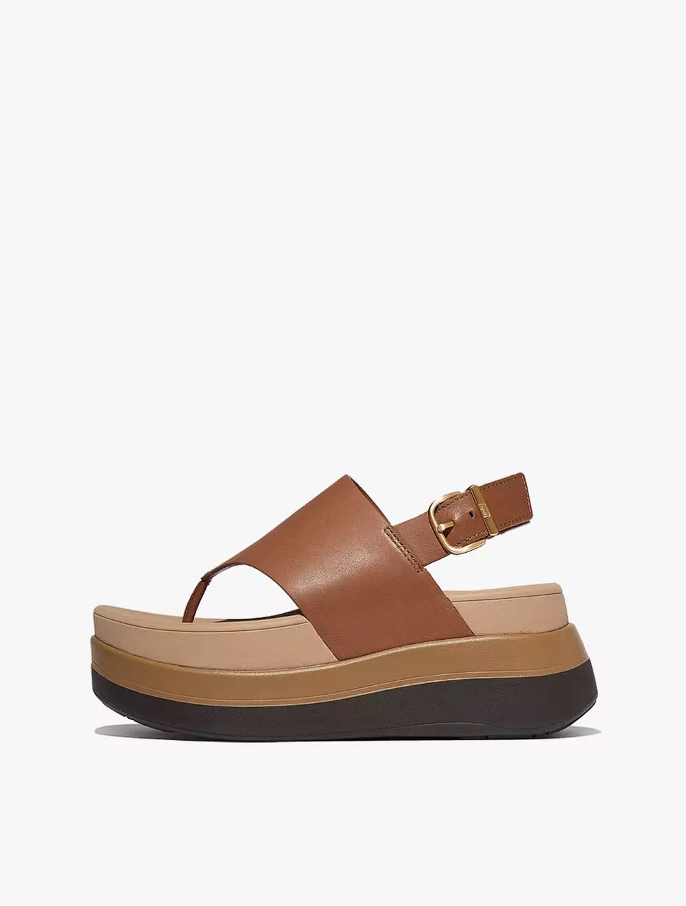 Fitflop F-Mode Stack Leather Back-Strap Toe-Post Sandals - Deep Tan