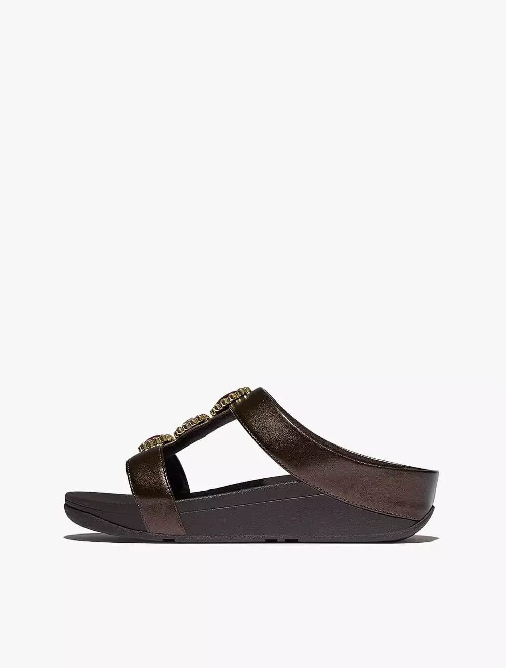 FitFlopFitflop Fino Crystal-Jewel H-Bar Slides - Metallic Chocolate Brown2299000.001471360.00