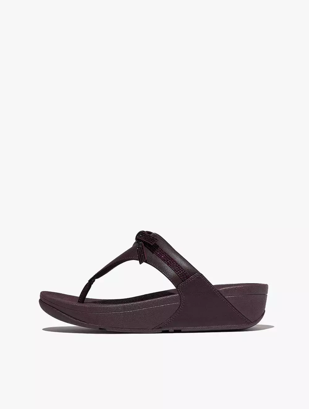 Fitflop Lulu Glitz-Bow Leather Toe-Post Sandals - Plumberry