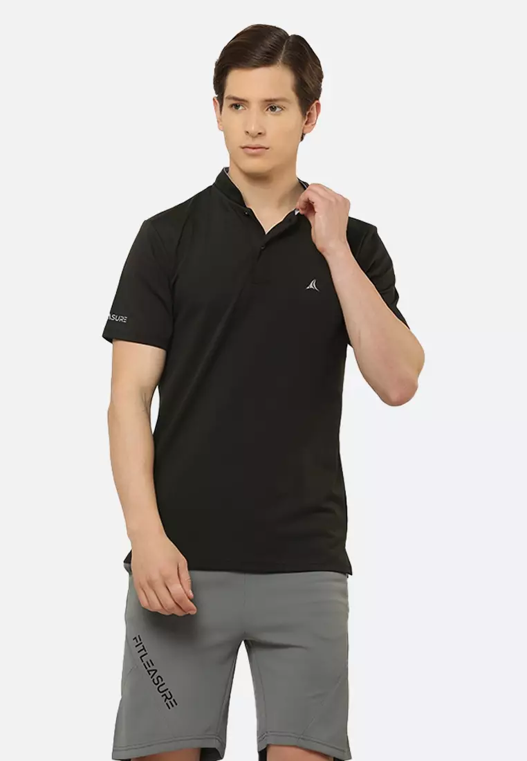 FitleasureHitam Luxe Pria Athleisure Tee Desainer Kerah Cina7159800.00241090.00