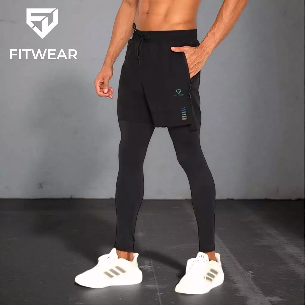 Fitwear - Celana Lari + Legging Dryfit Pria JACKSON COLORED REFLECTIVE - BLACK