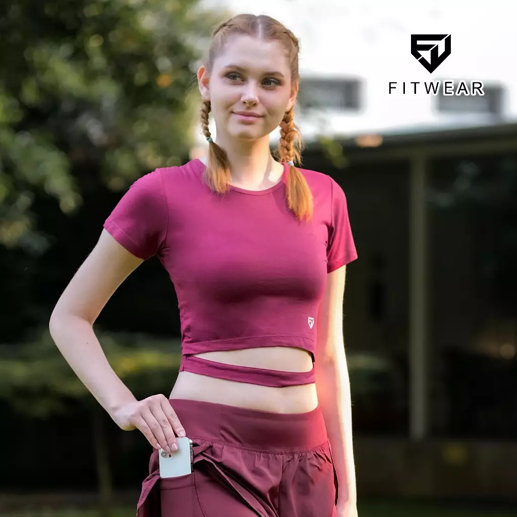 Fitwear - Croptop Wanita LILY HOLLOW S/S - BURGUNDY