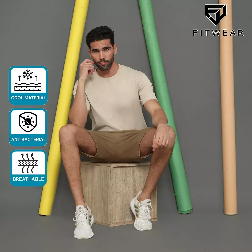 Fitwear Kaos Olahraga Pria Fitwear STEVE LASER CUT ANTI BACTERIAL - BEIGE