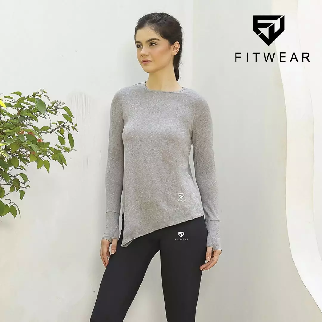 Fitwear - Kaos Olahraga Wanita FITWEAR NEW AURORA DRYFIT SIDE TIE OVERSIZE L/S - STEEL GRAY