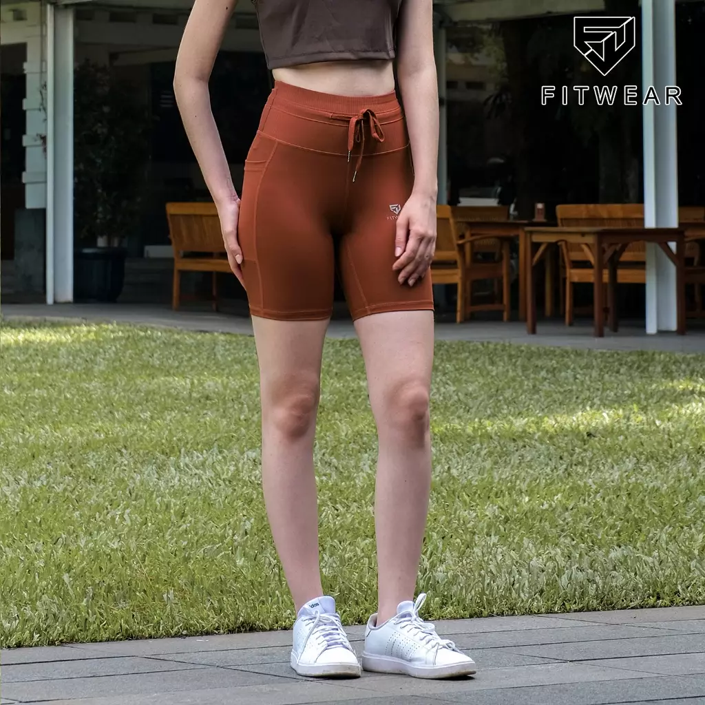 Fitwear Legging / Celana Pendek Olahraga PHARITA POCKET TIE - BRICK TIE