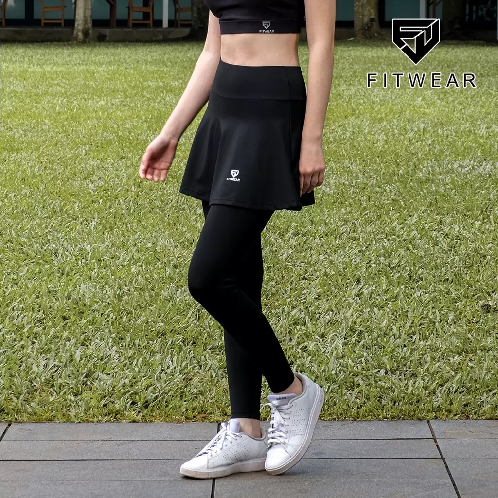 Fitwear Rok + Legging Olahraga Dryfit Wanita KAZUHA POCKET BACK WAVE - BLACK