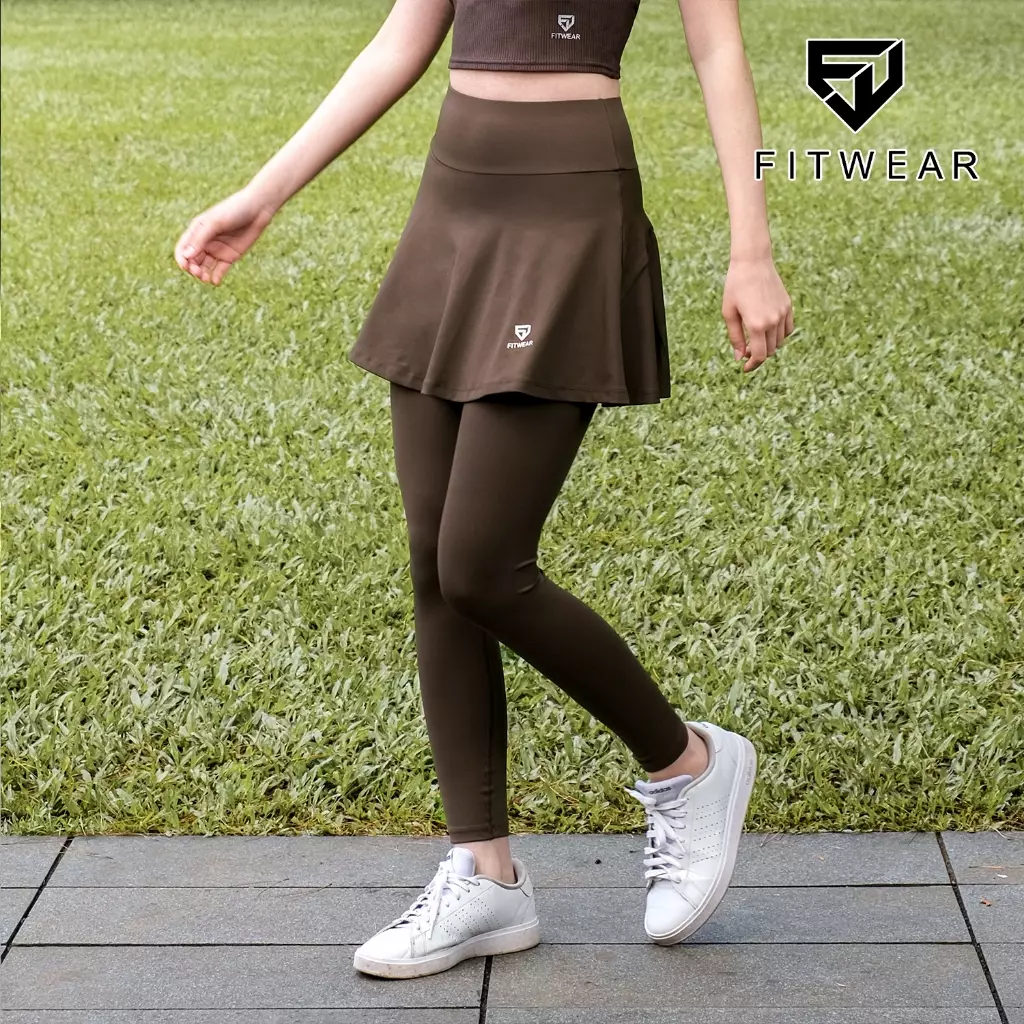Fitwear Rok + Legging Olahraga Dryfit Wanita KAZUHA POCKET BACK WAVE - COFFEE
