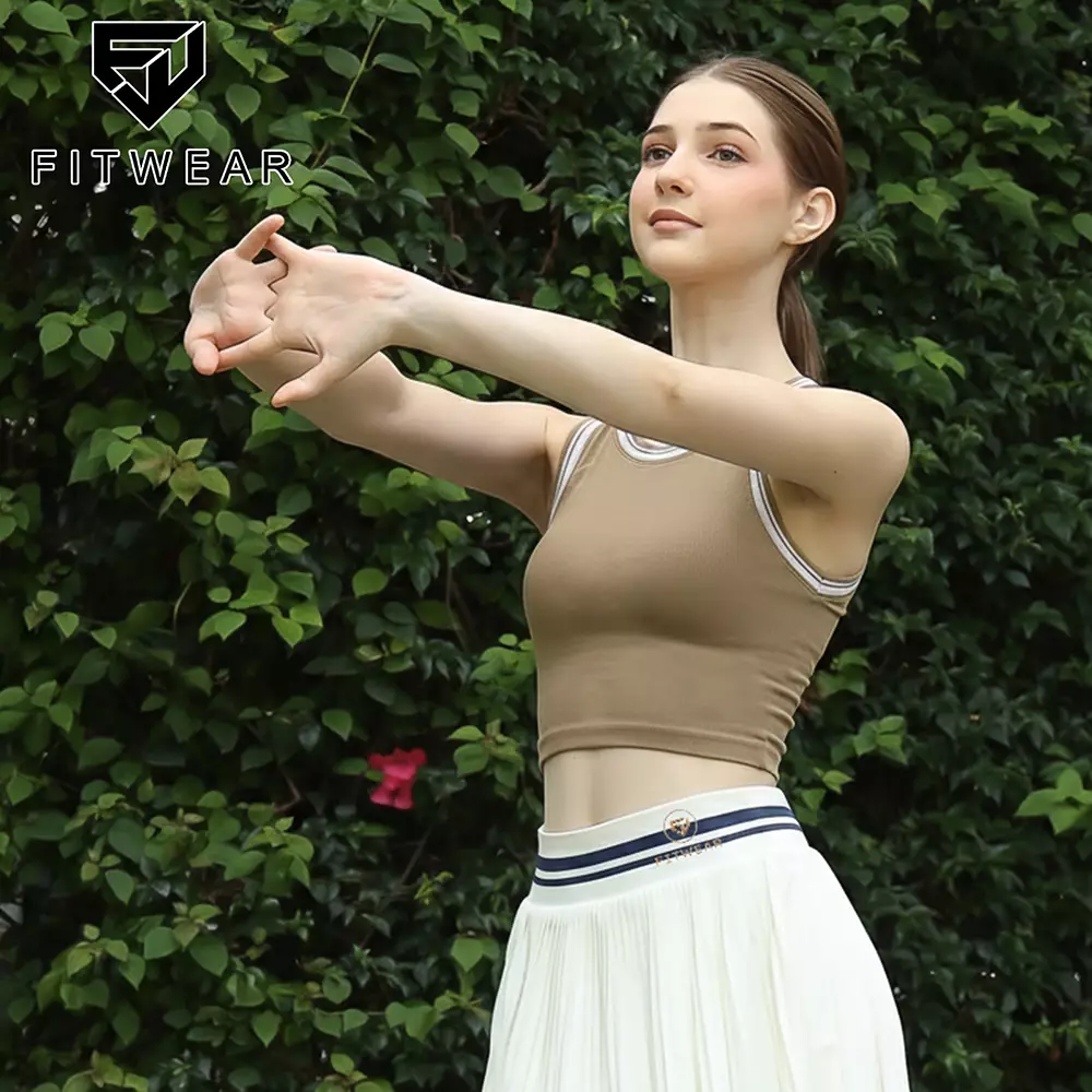 Fitwear Tanktop Olahraga Padel Wanita MONICA RIB CROP TANKTOP - MOCCA