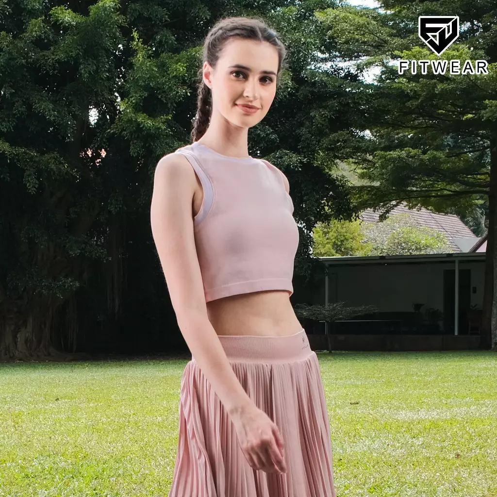Fitwear Tanktop Olahraga Padel Wanita MONICA RIB CROP TANKTOP - PALE PINK
