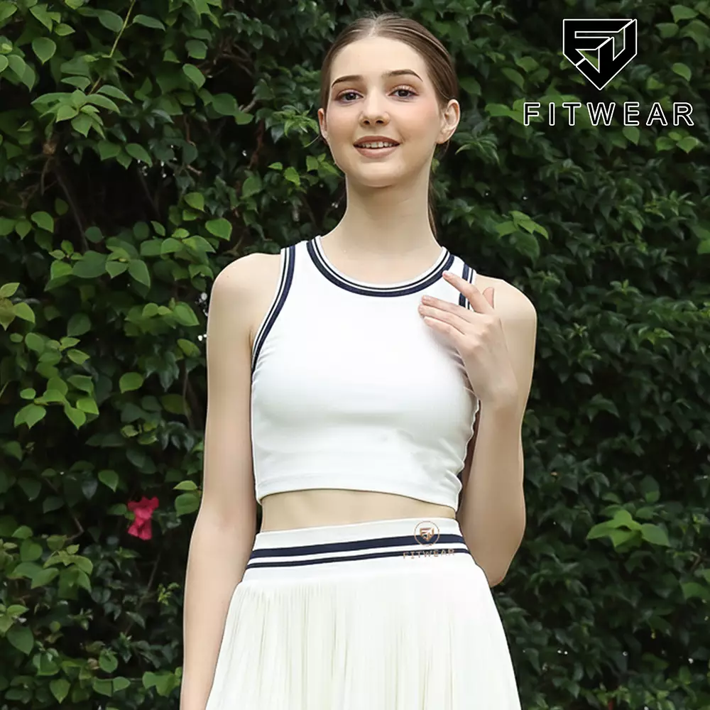 FITWEARFitwear Tanktop Olahraga Padel Wanita MONICA RIB CROP TANKTOP - WHITE (NAVY LINE)139999.0097000.00