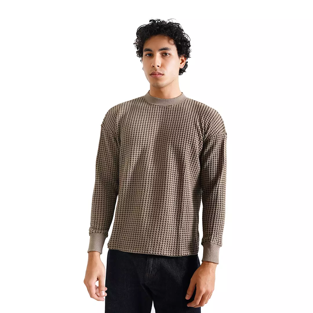 3D Square Knit Square Crewneck Sweatshirt Brown