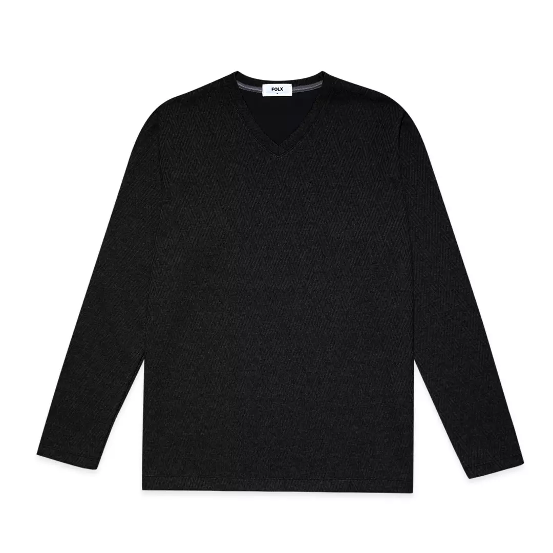 FOLXV-Neck Geometric Texture Long Sleeve T-Shirt Black299000.00