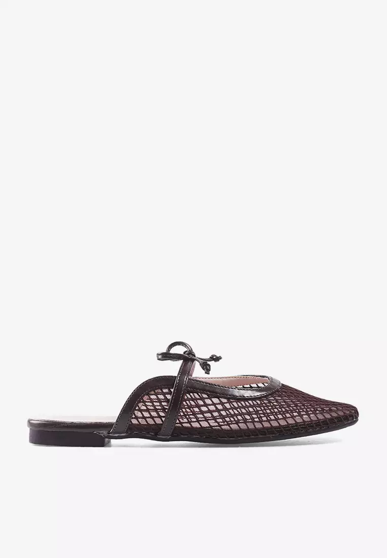 Flatshoes Mules Jaring Transparan Ringan L.Kalea Coffee