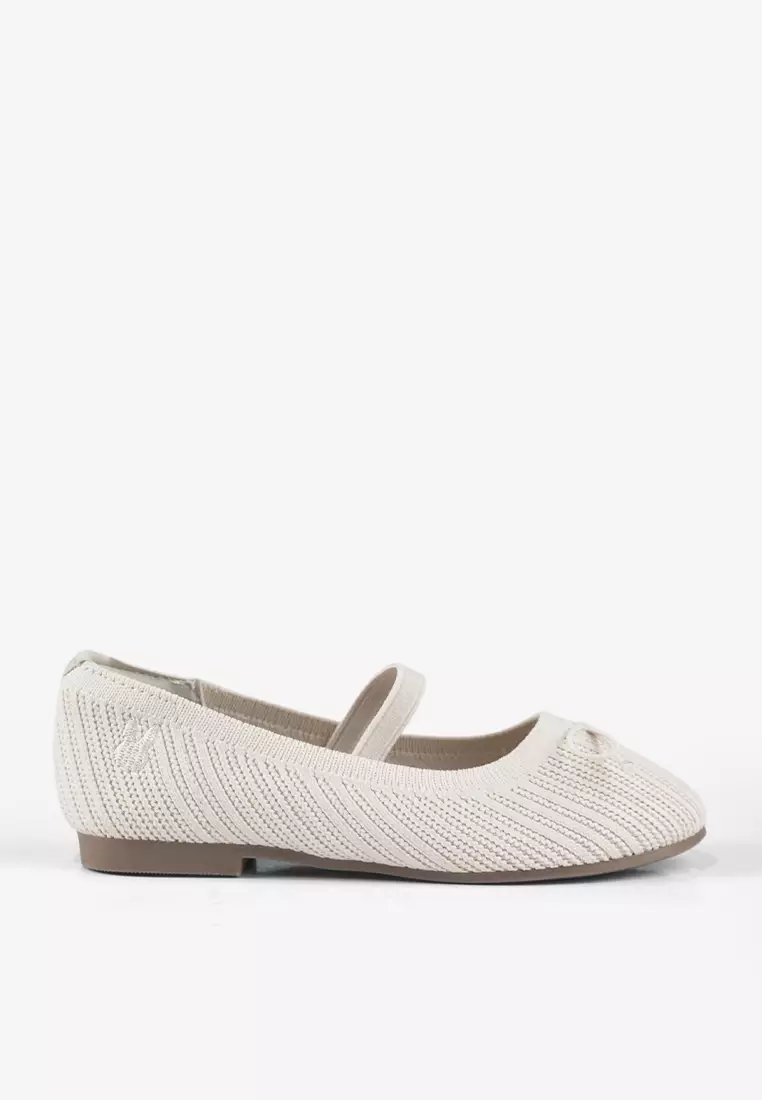 Sepatu Knit Flatshoes Ballerina Mary Jane Anak Perempuan K.Monica Off White
