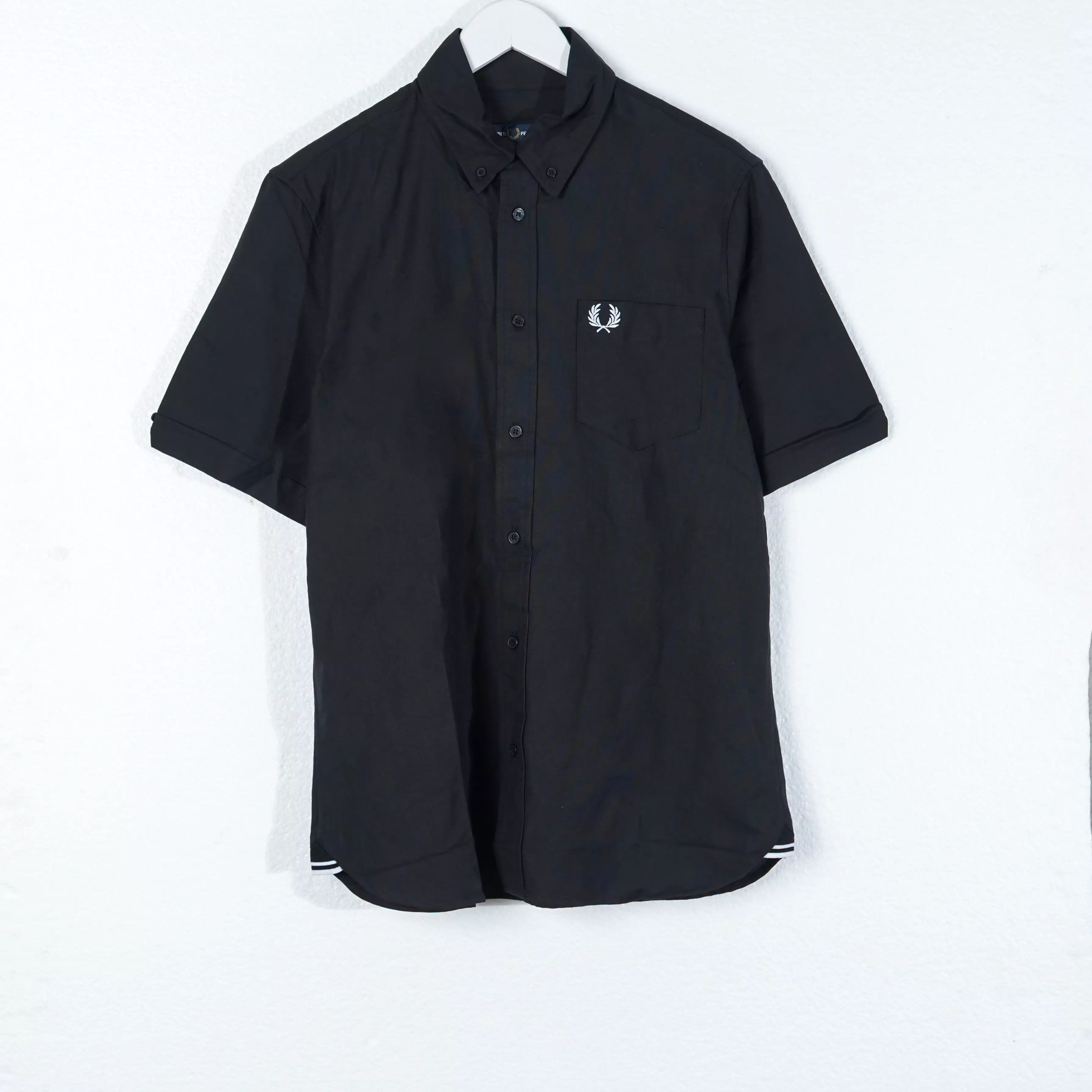 Kemeja FRED PERRY LOGO POCKET WHITE BLACK SHIRT 100% ORIGINAL