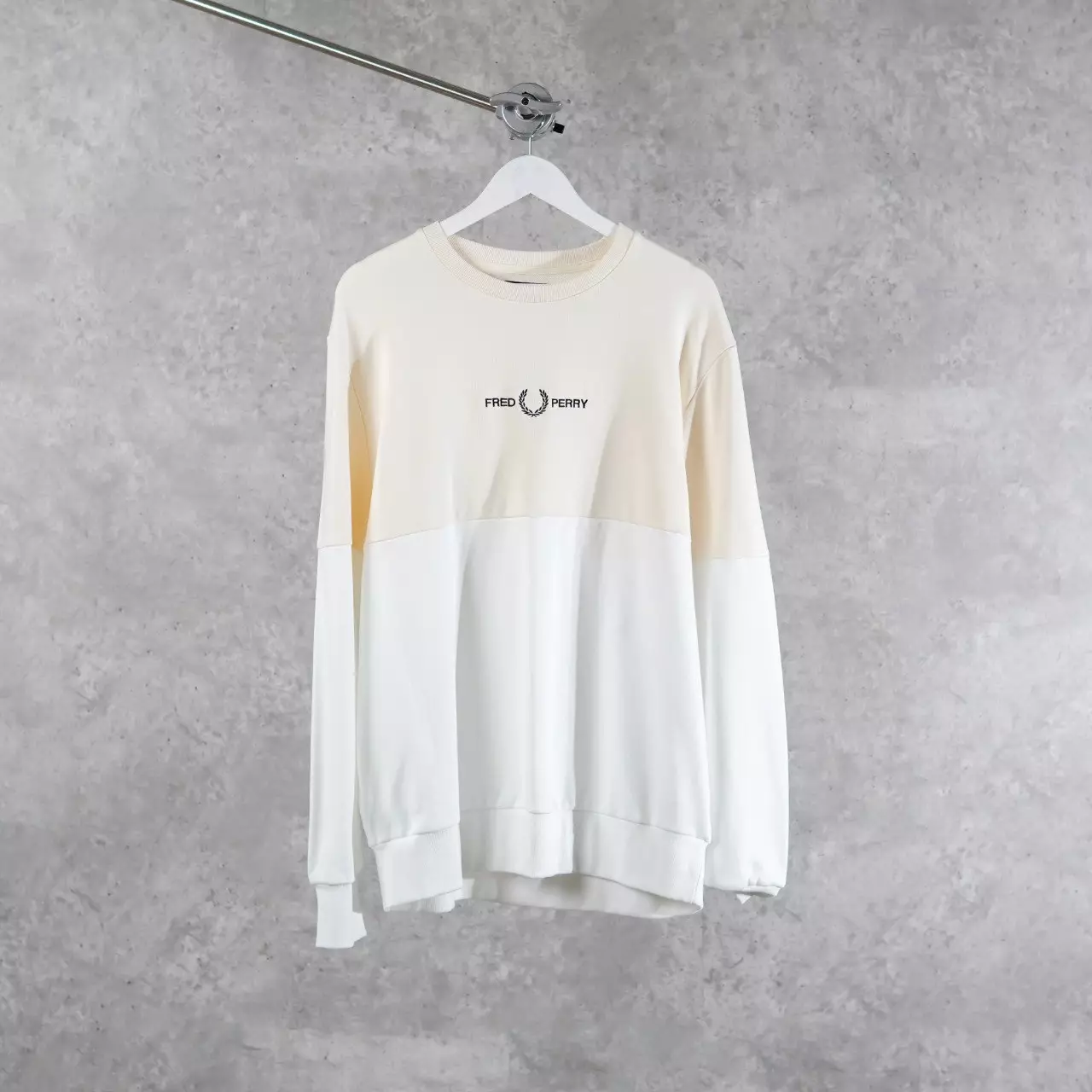 Sweater FRED PERRY TEXT LOGO CENTER HALF CREAM WHITE SWEATSHIRT 100% ORIGINAL