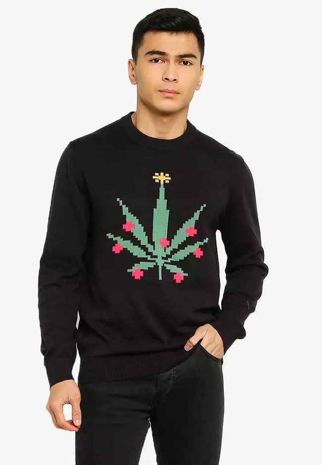 Xmas Cannabis Leaf Jumper
