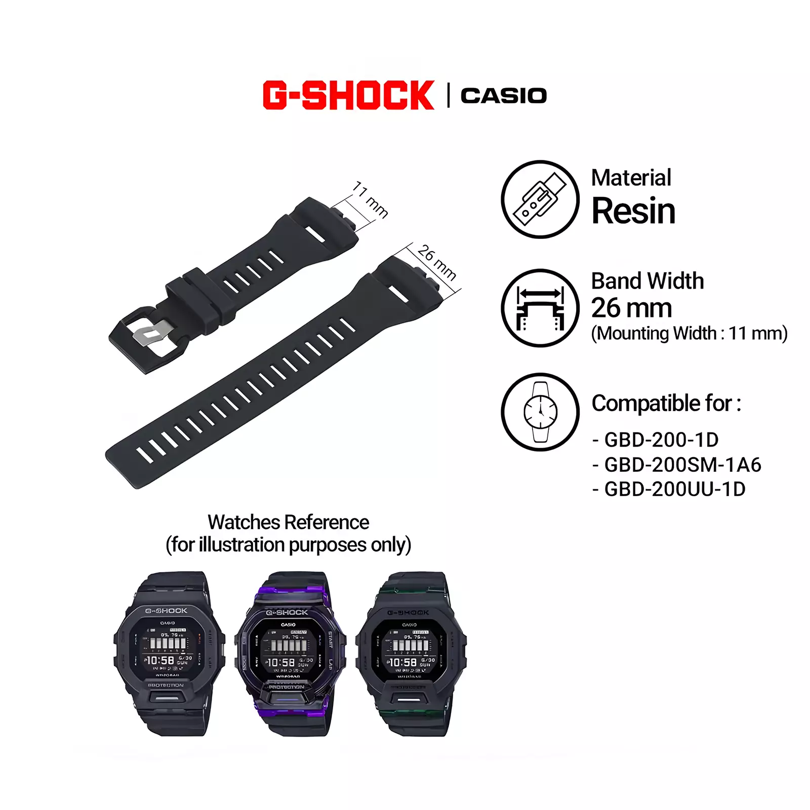 G-shockTali Strap G-Shock GBD-200 / GBD-200SM / GBD-200UU 26mm - Black Resin1310001.001048000.00