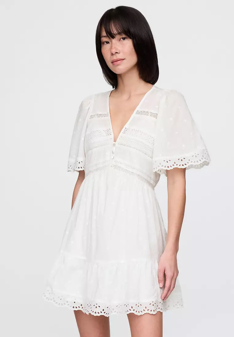 Flutter-Sleeves Eyelet Mini Dress
