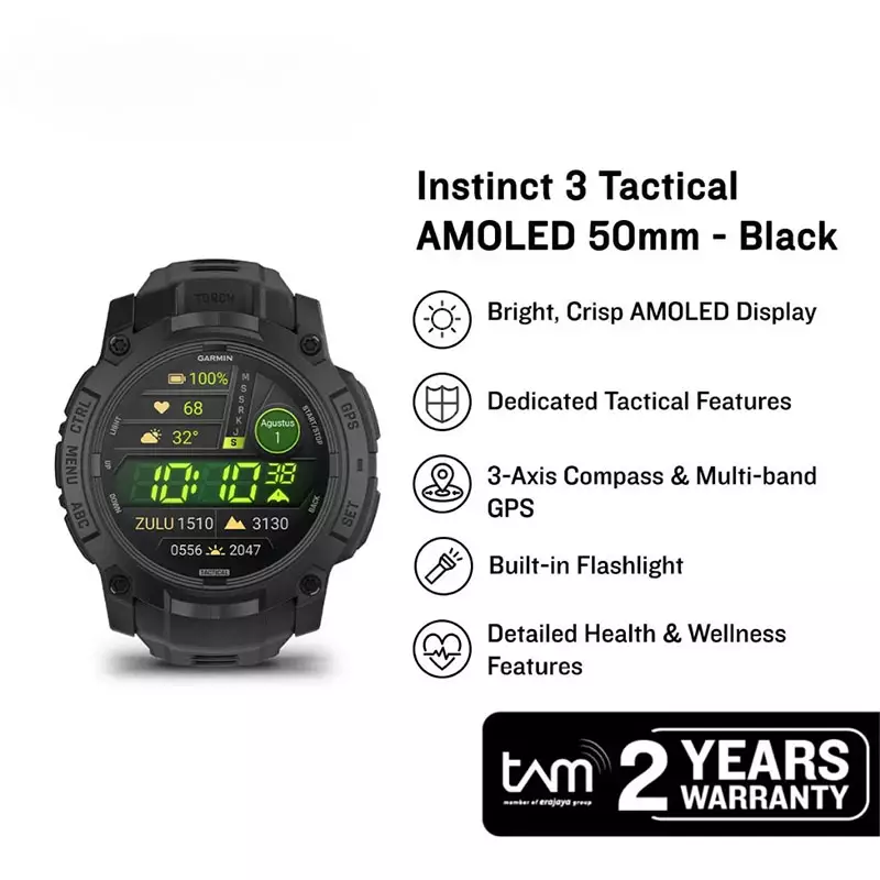 GarminJam Tangan Pria Garmin Instinct 3 010-03020-90 Smartwatch Rugged Outdoor GPS AMOLED Tactical Edition Silicone Band10699000.0010170000.00