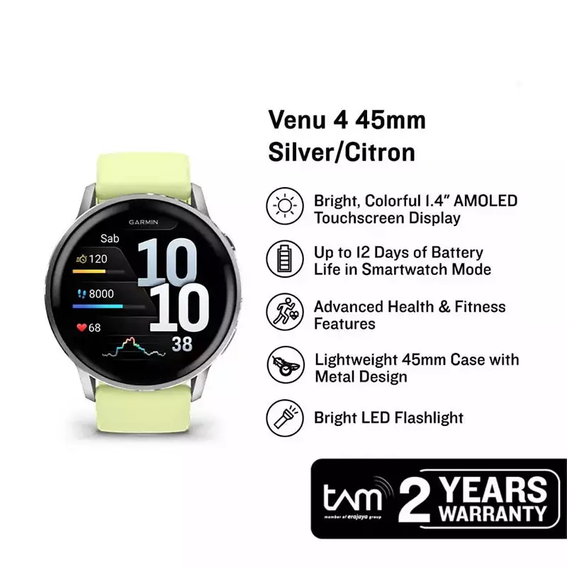GarminJam Tangan Pria Garmin Venu 4 010-03014-42 Advanced GPS Smartwatch Digital Dial Citron Silicone Band9699000.00
