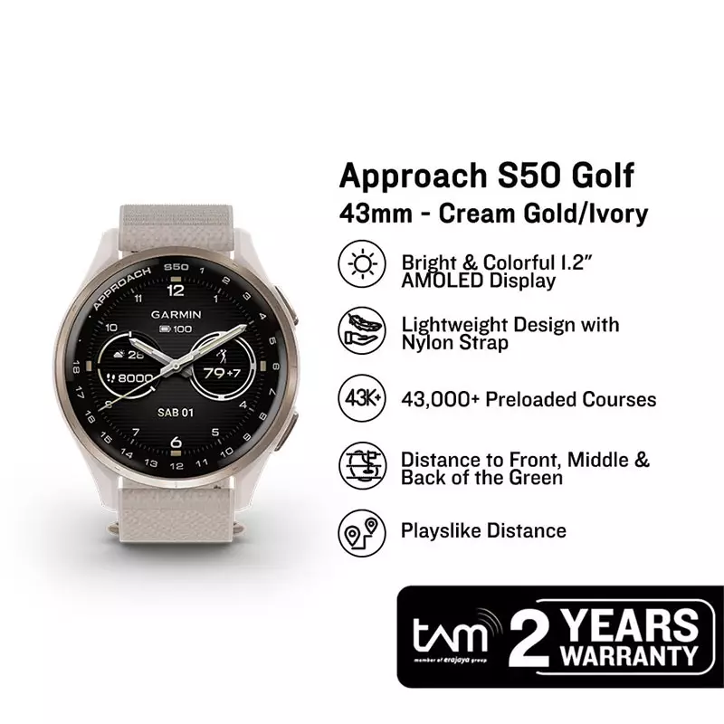 GarminJam Tangan Unisex Garmin Approach S50 010-03010-41 Smartwatch Advanced GPS Golf Slate Aluminum Bezel Ivory Nylon Band7159000.00