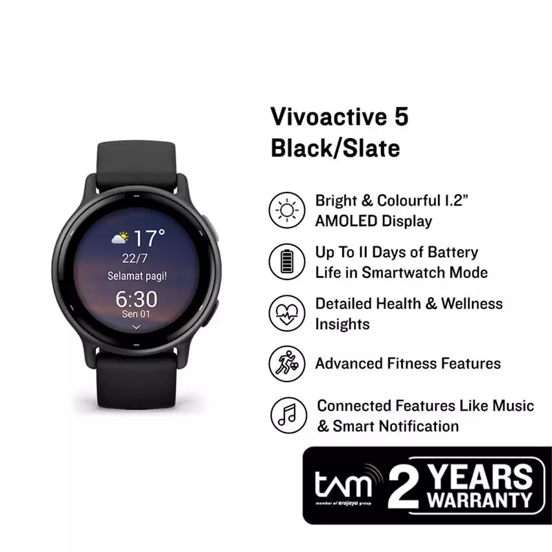 GarminJam Tangan Unisex Garmin Vivoactive 5 010-02862-5A Smartwatch Slate Alumunium Bezel Black Silicone Band5349000.003199000.00