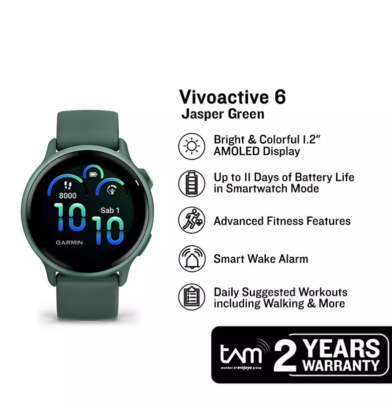 GarminJam Tangan Unisex Garmin Vivoactive 6 010-02985-42 Smartwatch GPS Jasper Green Alumunium Bezel Jasper Green Band5349000.005090000.00