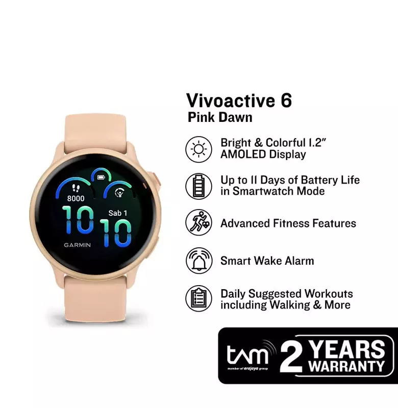 Jam Tangan Unisex Garmin Vivoactive 6 010-02985-43 Smartwatch GPS Pink Dawn Alumunium Bezel Pink Dawn Silicone Band
