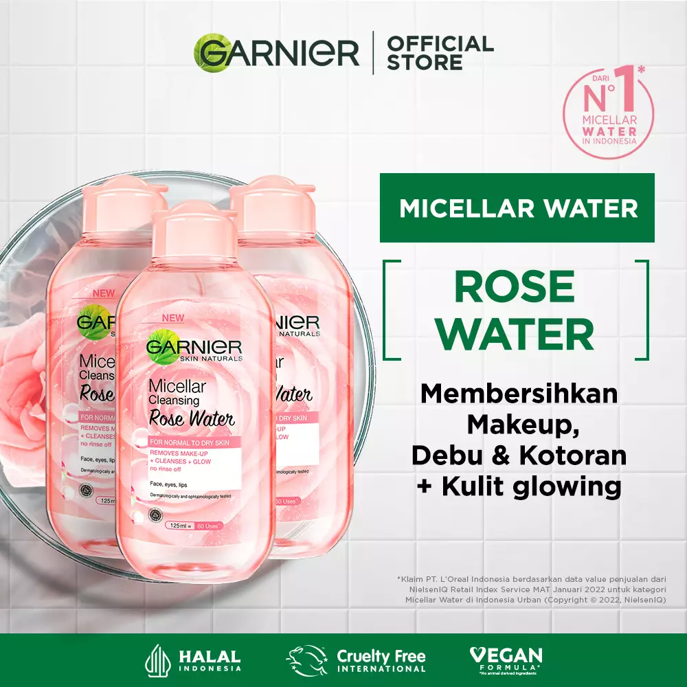 Garnier Micellar Water Rose Cleanse & Glow 125ml Pack of 3