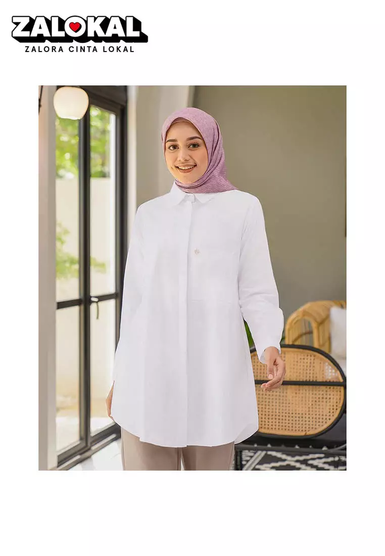 Geulis.id DAREEN SHIRT TUNIK KERJA / KEMEJA KERJA / KEMEJA ANTIKUSUT (7 warna) Top - PUREWHITE