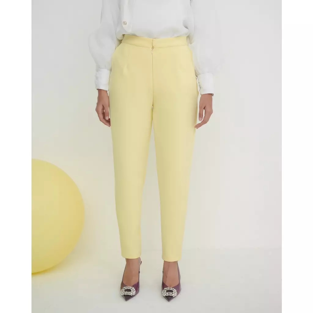 Geulis.id MONIC BASIC PANTS BRIGHT COLOR CELANA KERJA / CELANA DAILY / CELANA SCUBA (6 warna) Bottom - YELLOW