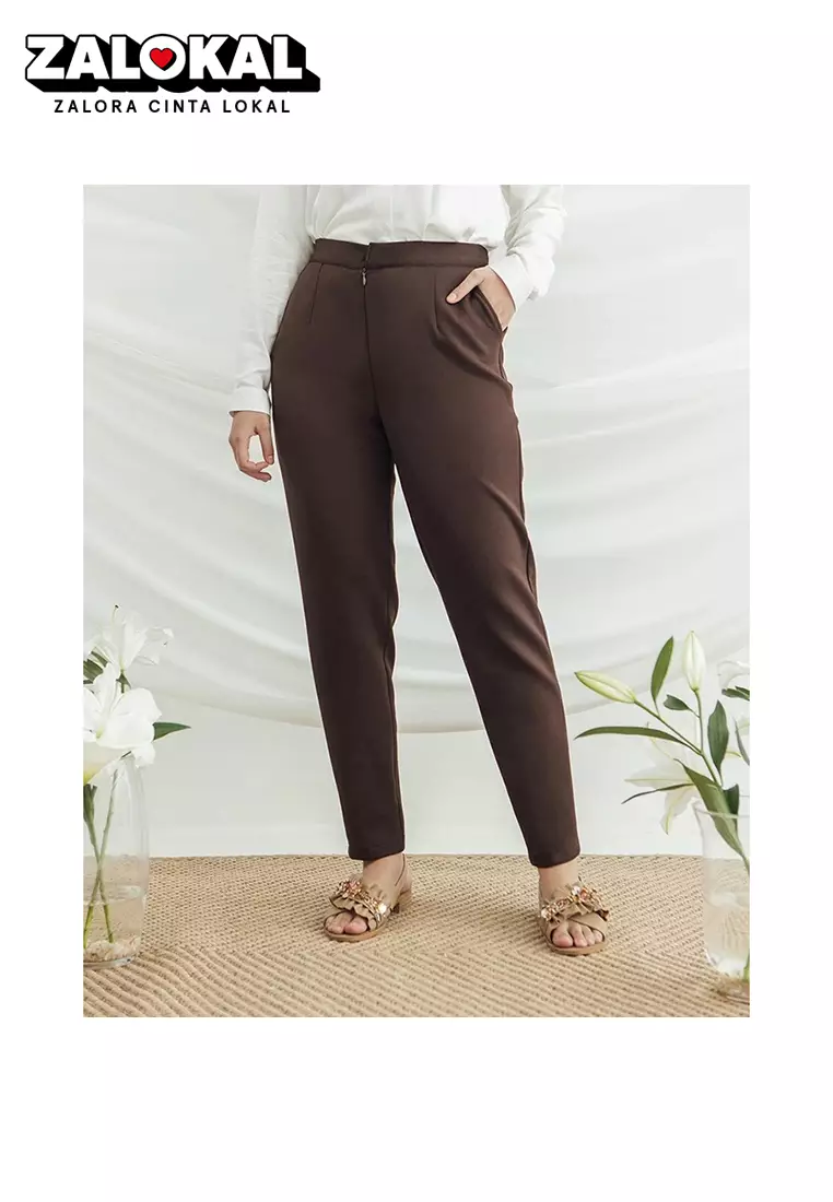 Geulis.id MONIC BASIC PANTS CLASSIC COLOR CELANA KERJA / CELANA DAILY / CELANA SCUBA (6 warna) Bottom - COFFEE