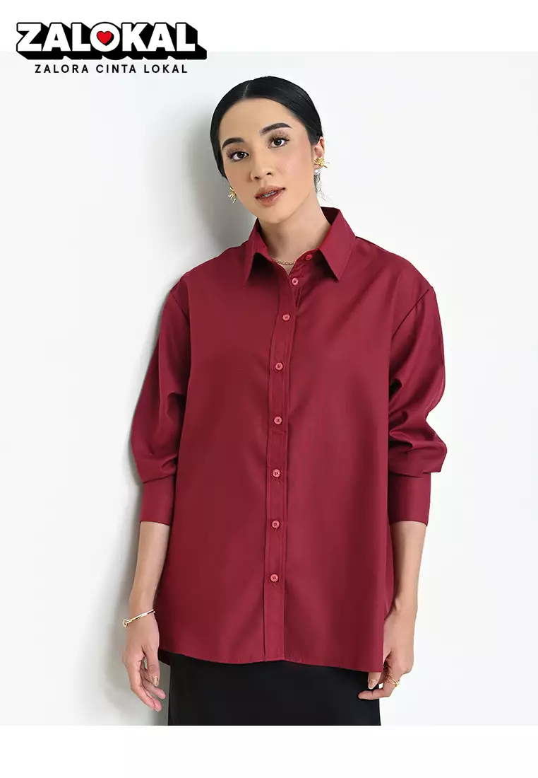 Geulis.id PIPER SHIRT / KEMEJA OVERSIZE WANITA - MAROON