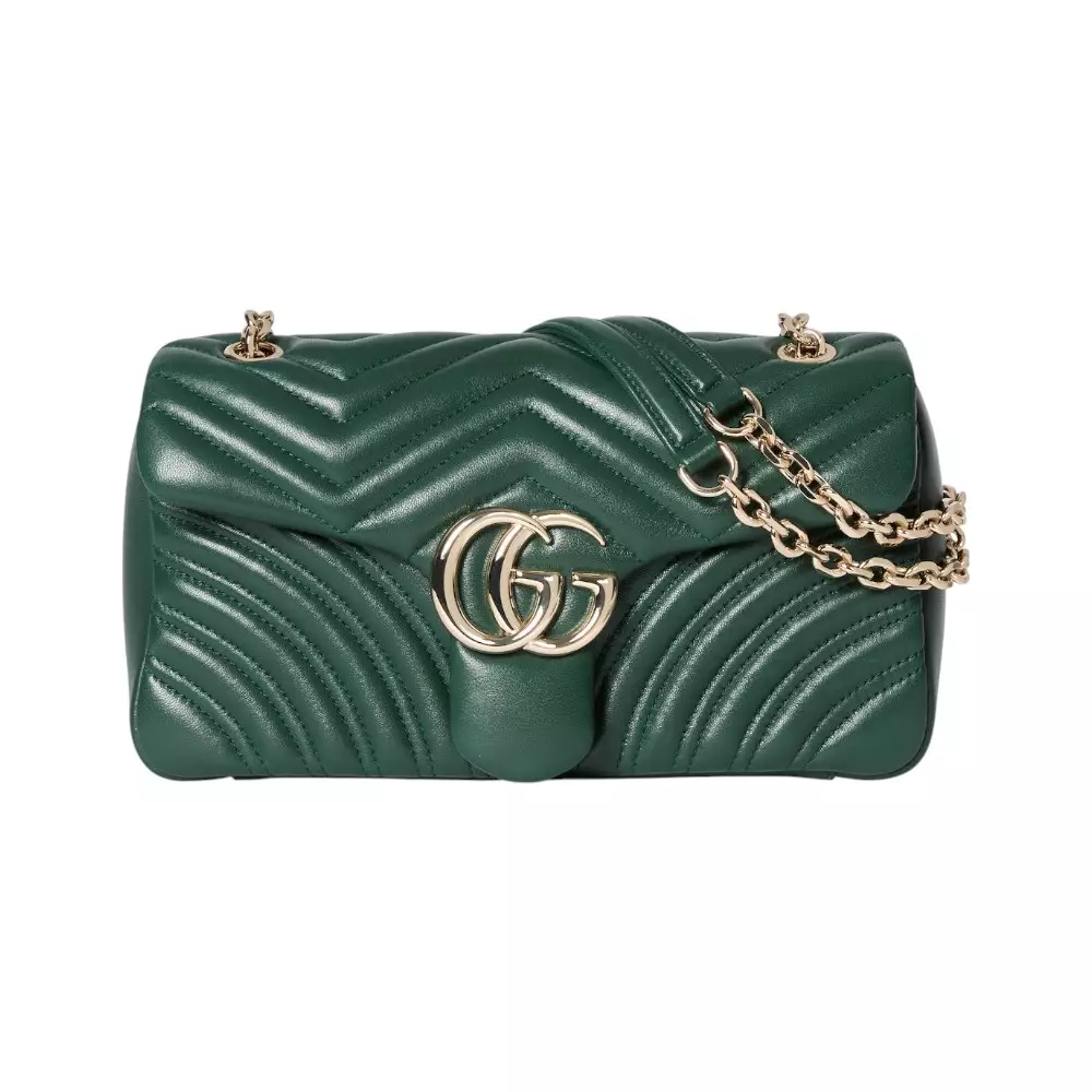 GG Marmont Medium Back Pocket Shoulder Bag Green Ghw