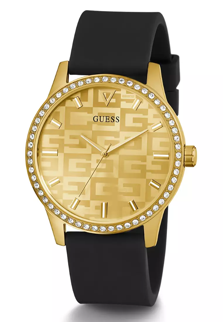 Guess GW0355L1 - Jam Tangan Analog Wanita - Gold - Black Rubber Strap