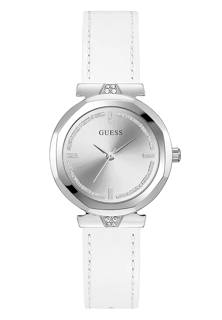 Guess Ladies Watch Rumour Jam Tangan Analog Wanita - Silver Case White Leather Strap - GW0689L1