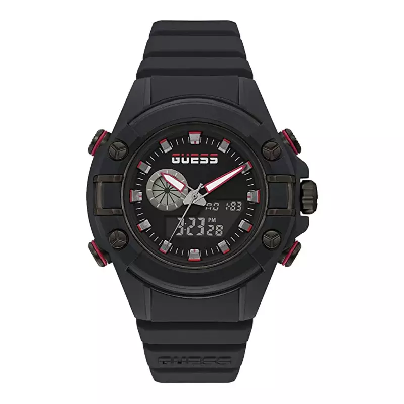 Jam Tangan Pria Guess G-Force GW0269G3 Digital-Analog Black Dial Black Silicone Strap