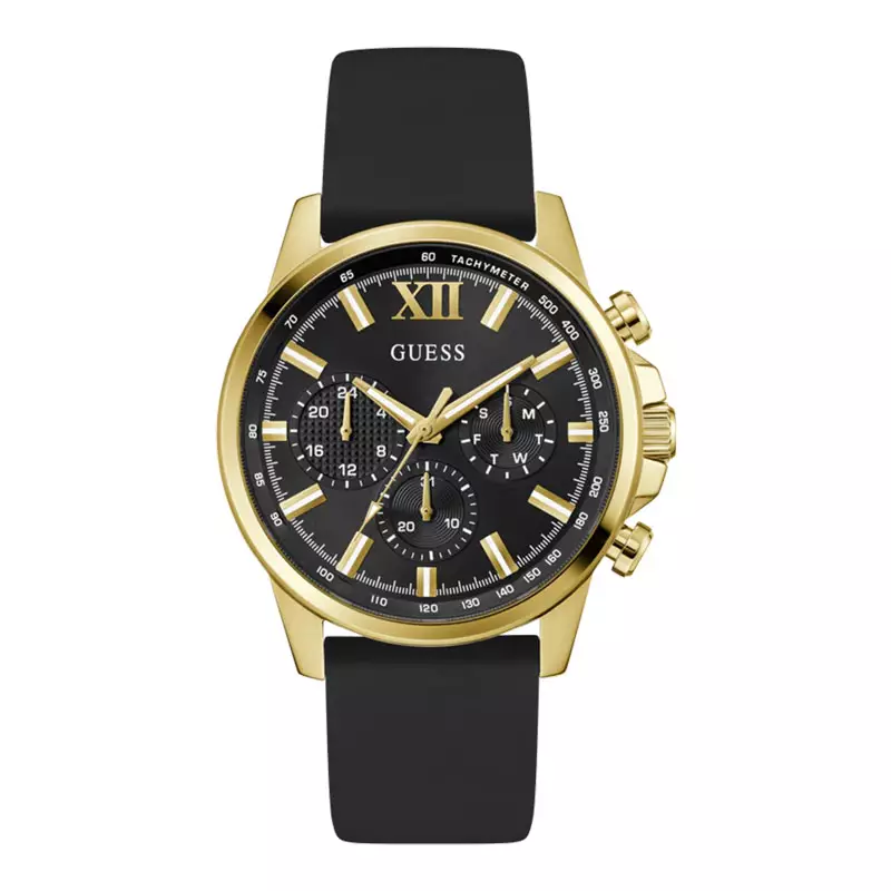 Jam Tangan Pria Guess Multi-function GW0913G2 Men Black Dial Black Silicone Strap
