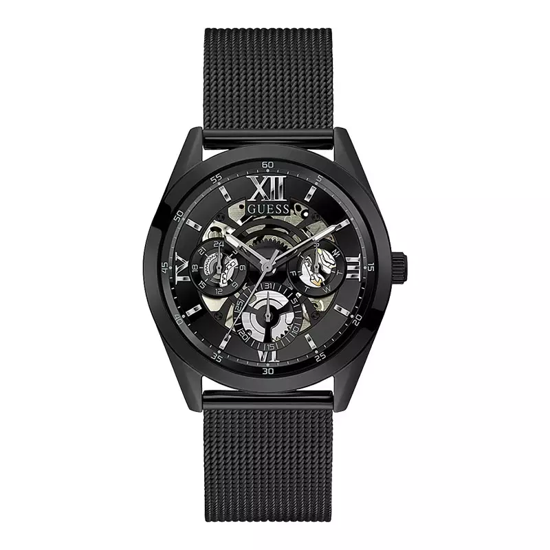 Jam Tangan Pria Guess Tailor GW0368G3 Black Skeleton Dial Black Mesh Strap