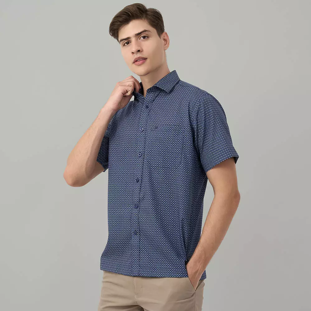 Kemeja Lengan Pendek Guy Laroche Printed Asell Rowen - Navy Cotton Smart Casual