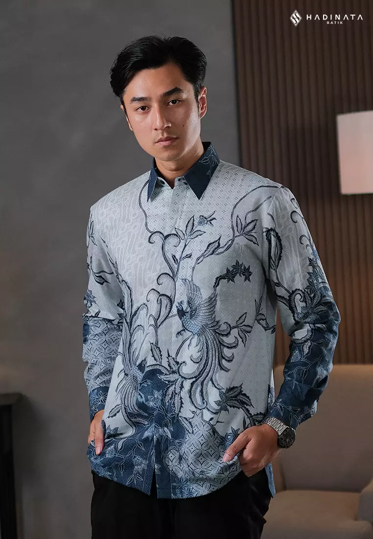 Hadinata Batik Pria Kemeja Panjang Furing Dobby Ekawira Blue