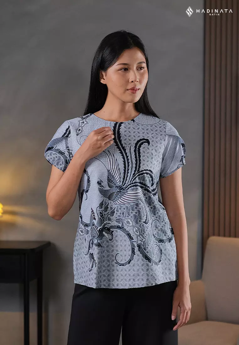 Hadinata Batik Wanita Superfine Blouse Pendek Mahija Grey