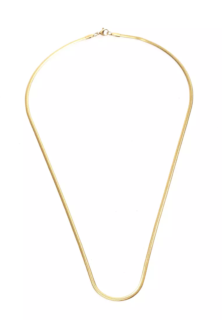 Ainsley Aksesoris Fashion Kalung Pria Wanita Necklace Desain Rantai Pipih Material Titanium ORIGINAL - Gold