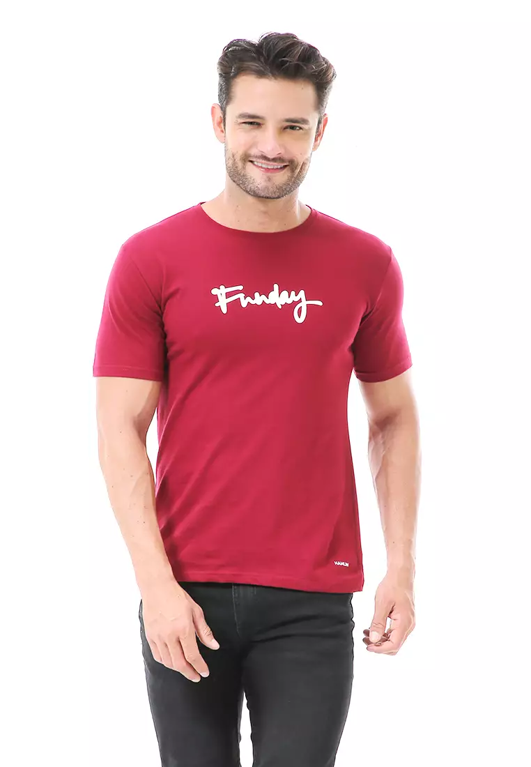 HamlinAisley Atasan Kasual Pria Kaos Motif Funday Lengan Pendek Material Cotton ORIGINAL - Maroon847500.00339000.00
