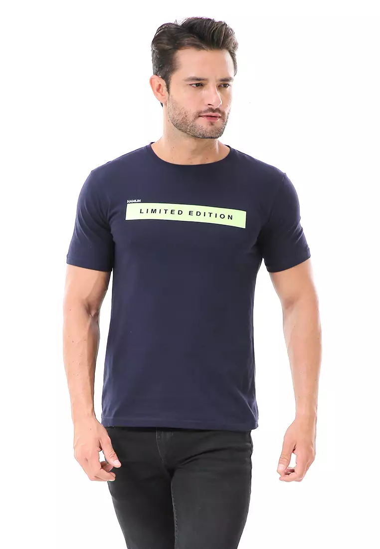HamlinAisley Atasan Kasual Pria Kaos Motif Limited Edition Lengan Pendek Material Cotton ORIGINAL - Navy847500.00339000.00